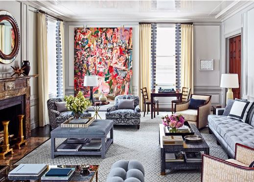 A traditional rug doesn’t have to define your space. Add in updated prints and colors pulled from the rug for a wonderful eclectic look.