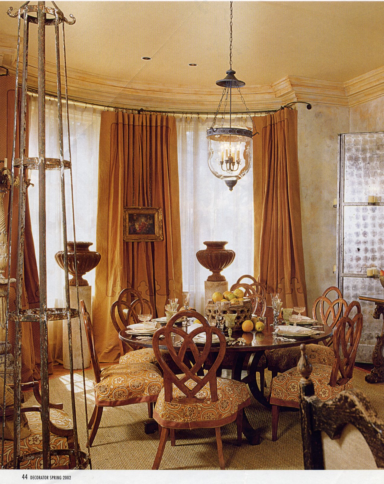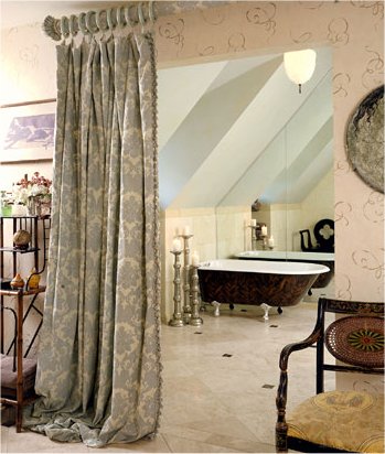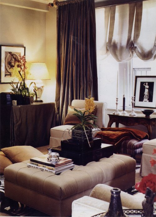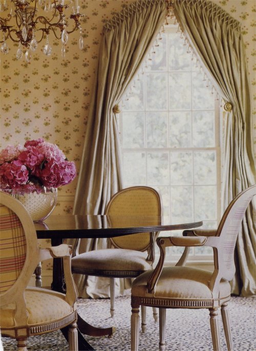 Swept back silk with those cute little london’s in the bay (this is opera’s Renee’ Flemings’ home) window by Jamie Gibbs Assoc.