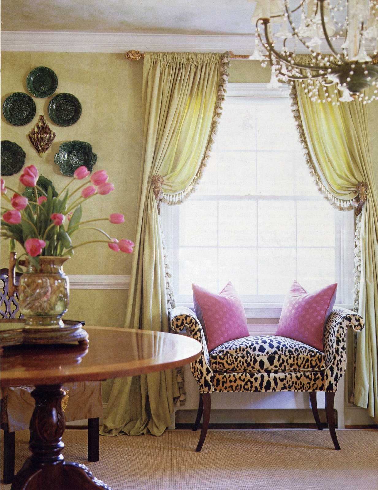 I just love this room by designer Sue Ellen Gregory, love the bench! tea anyone? Here’s a rod-pocket done well, and I love the way they’re mounted on the hold backs… Wow that’s just talent!!!