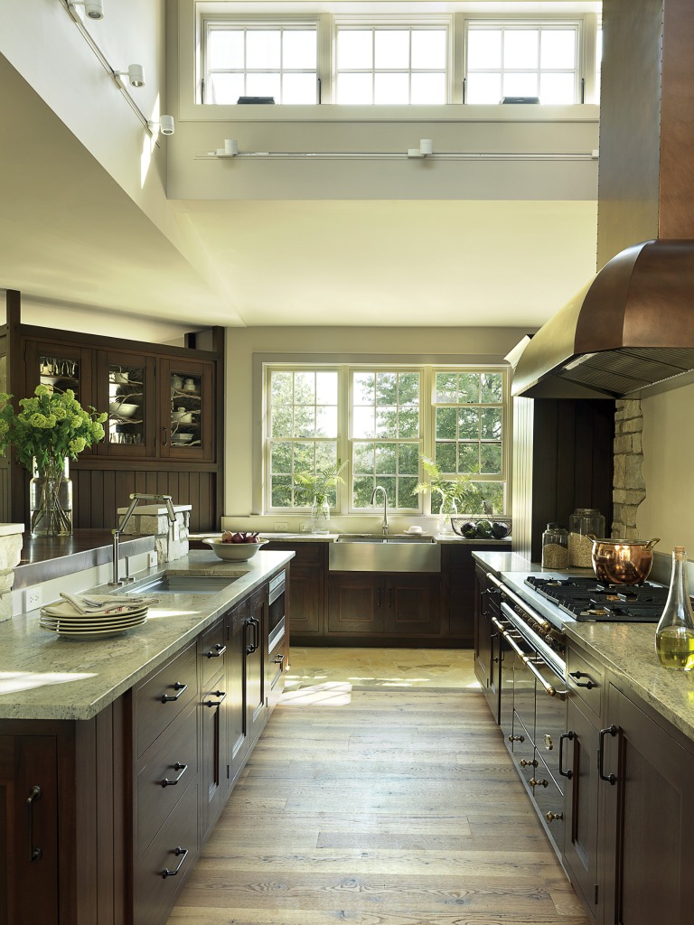 While open floor plans are still working in most new builds, I’ve definitely witnessed the coming and going of many trends and period styles from English Country to Midcentury Modern. But I feel we’re post trend now. I think current design allows us the freedom to incorporate history in an unfussy contemporary way. When choosing kitchen cabinets, the easiest way to accomplish this is to mix finishes. Choose a lighter color for the perimeter cabinets and another darker color for your center island. Your eye is naturally drawn to the darker cabinet finish, while the lighter shade cabinets against the walls will make the room appear larger.