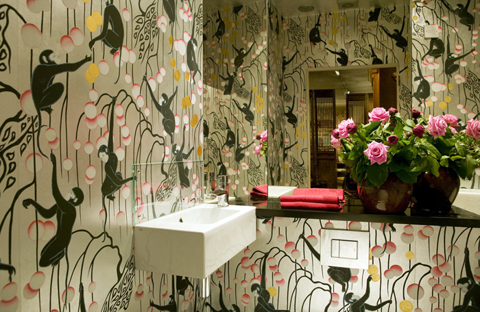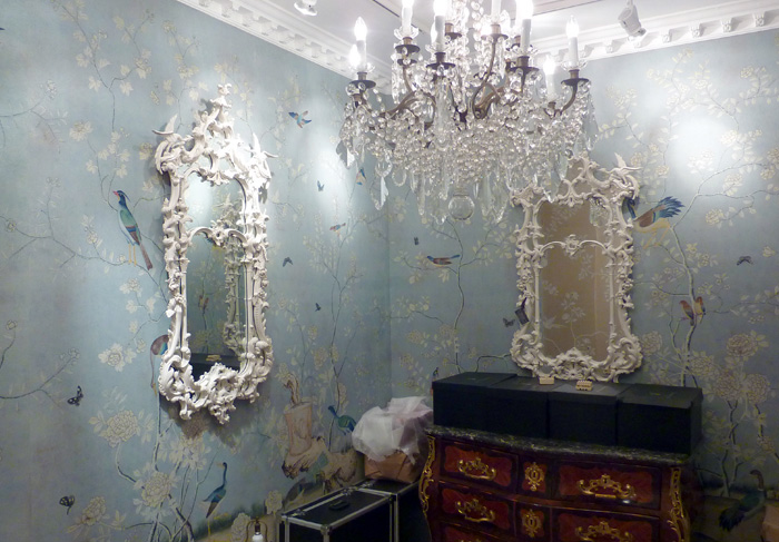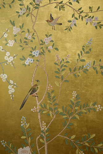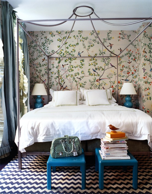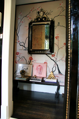 In the background on the walls is a stencil that my mother found. It was a roller and the design was applied vertically. I found a link to these rollers on Apartment Therapy. They are still sold on Etsy from The Painted House.