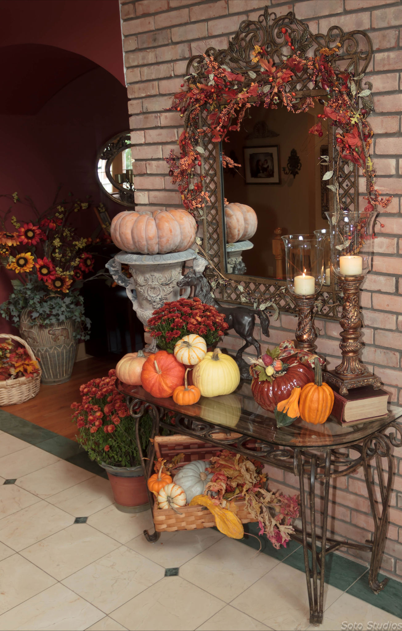 It’s something that people have been doing for years, and they are going to keep doing it because they want to feel the seasons and they enjoy celebrating the holidays using seasonal items for fall, from several pumpkin variations to represent harvest, to seasonally colored throws, pillows and mantle pieces, — it’s all about the color. Colors are identified for the seasons. In the fall you start to see more blacks, browns, reds, oranges and onyx. And decorating doesn’t have to be costly or time-consuming, you want to accessorize for the season and then build it up — it can become a layered process. You can easily and effortlessly update your home without breaking the bank, get a new throw, add a couple of pillows, and then start adding your holiday decorations as they come.